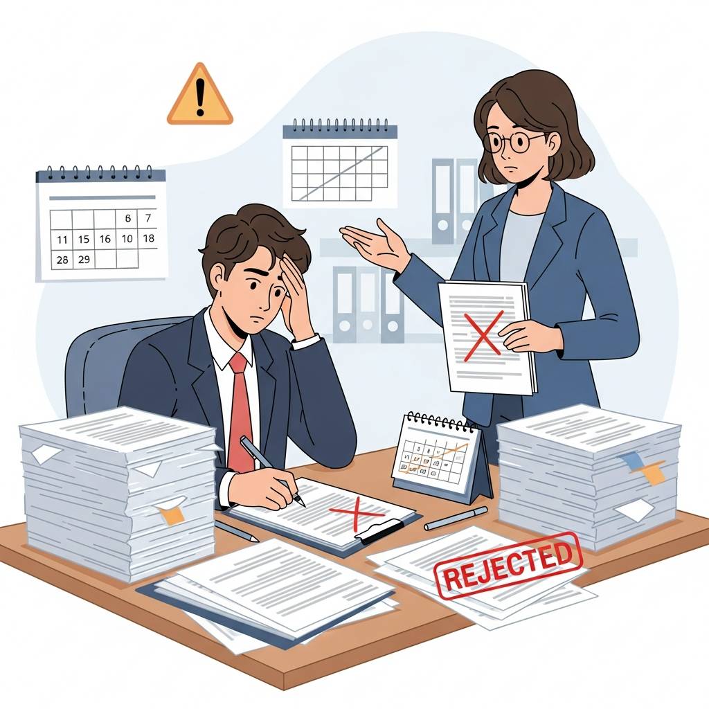 助成金申請には数多くの落とし穴が存在します。これらを理解せずに申請すると、せっかくの機会を逃してしまうだけでなく、最悪の場合は不正受給とみなされるリスクもあります。社労士として多くの企業の申請サポートを行ってきた経験から、よくある落とし穴と申請通過率を高める方法をお伝えします。